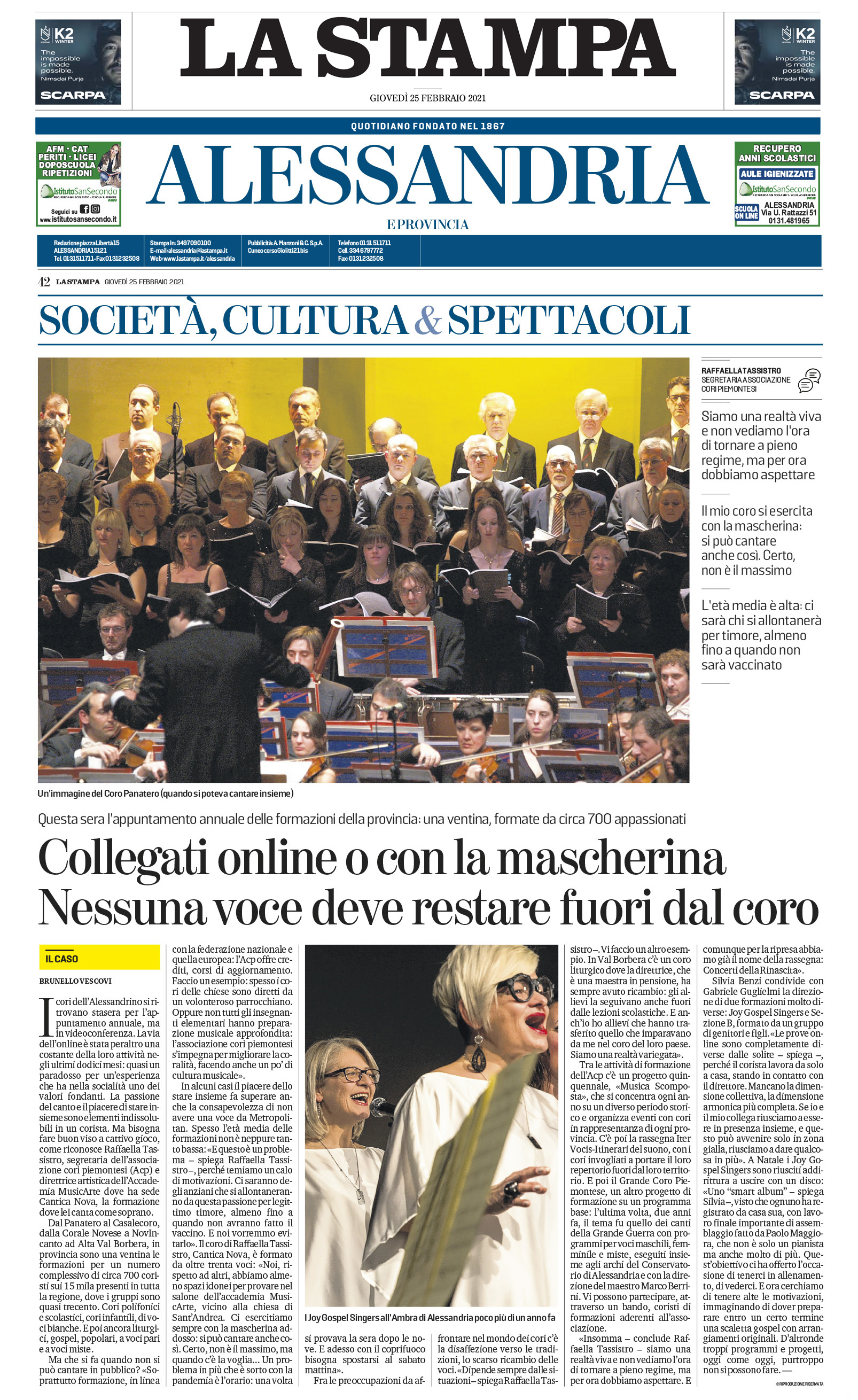 Cori e coristi fermi da un anno "Cantare è divertimento, soffriamo molto"