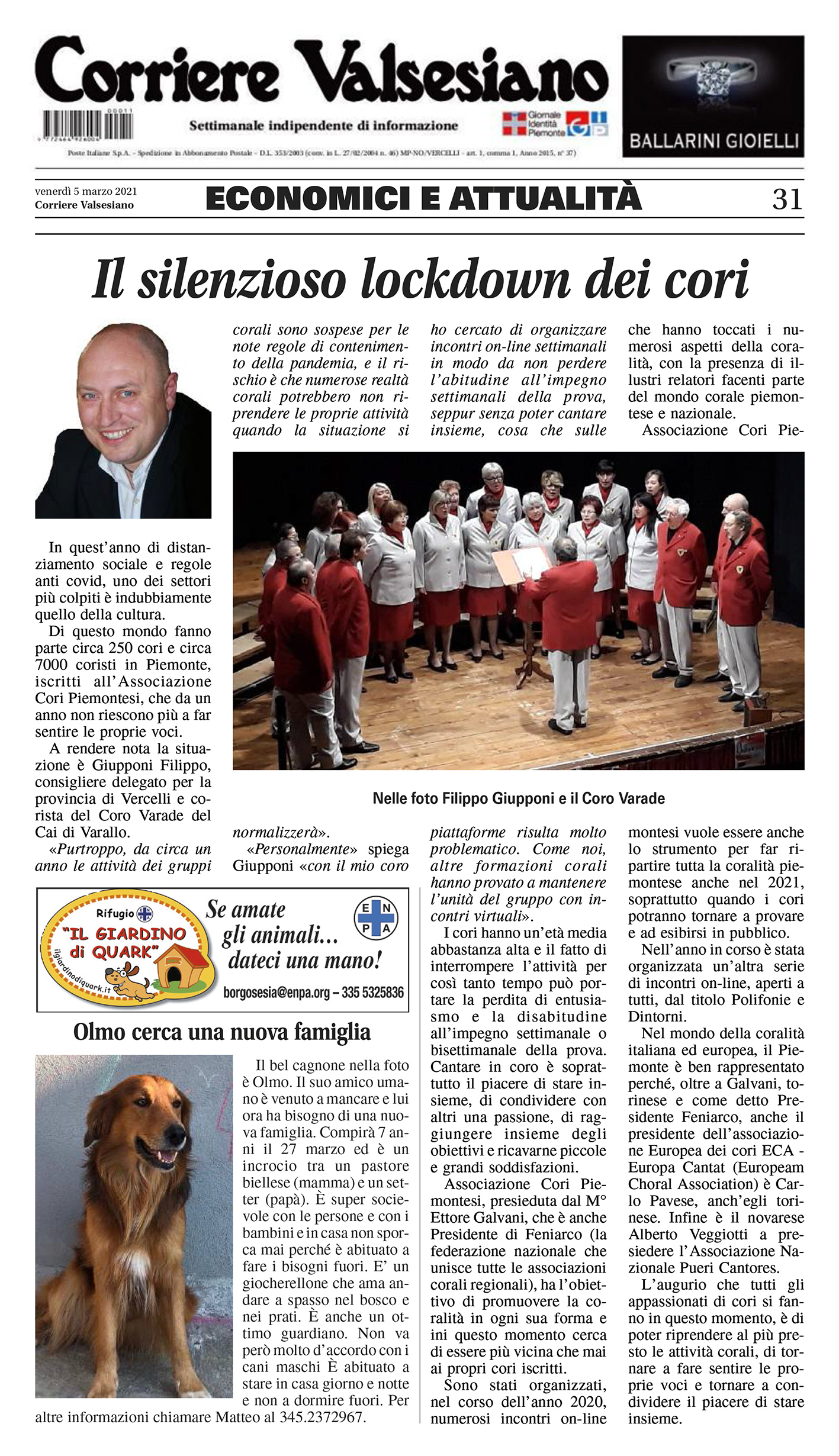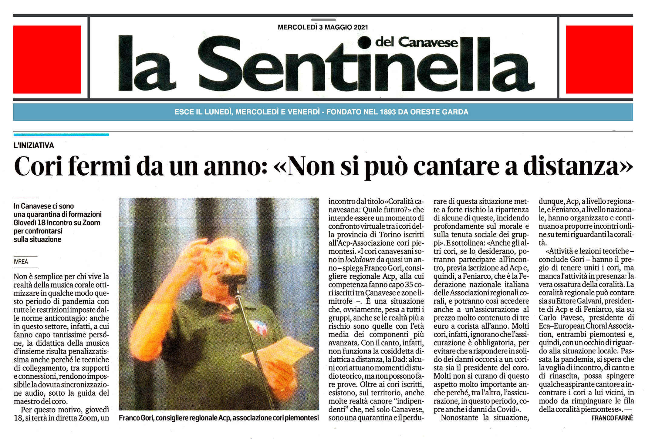 Sos per i 33 Cori Canavesani, in lockdown da un anno